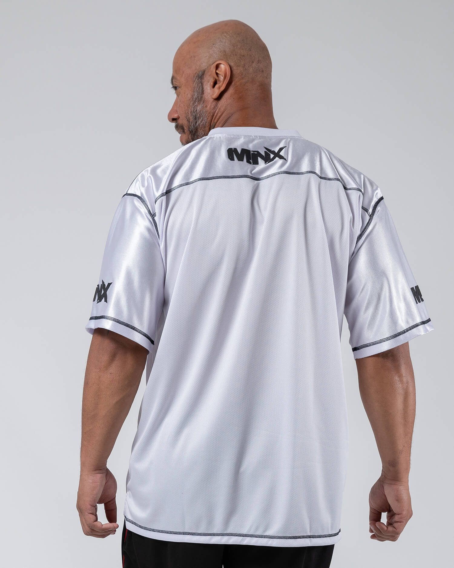 Dai un’occhiata a questa maglietta da allenamento in stile football americano, realizzata in tessuto micro mesh traspirante bianco. Con punti neri e toppa sul davanti. Questa maglietta da football รจ perfetta per il tuo allenamento o abbigliamento casual. Disponibile in vari colori.