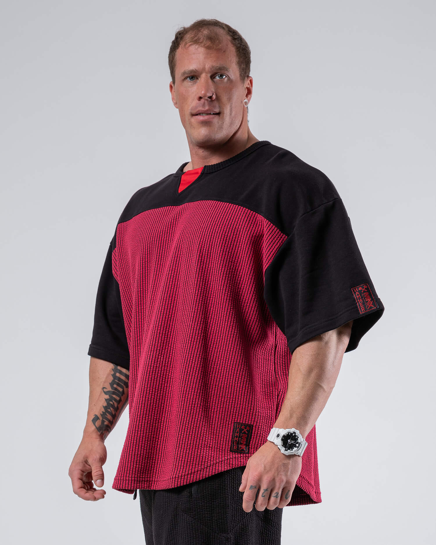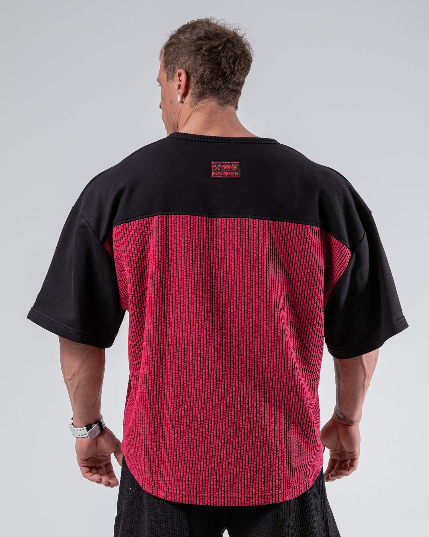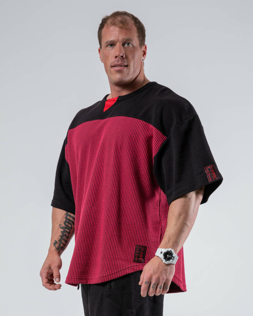 Questo oversize top da allenamento รจ una fusione moderna di abbigliamento da bodybuilding e stile streetwear. Realizzata in caldo tessuto a costine con vestibilitร  oversize e rilassata. Combina questo top da allenamento con i pantaloni Hammer e crea un outfit perfetto.