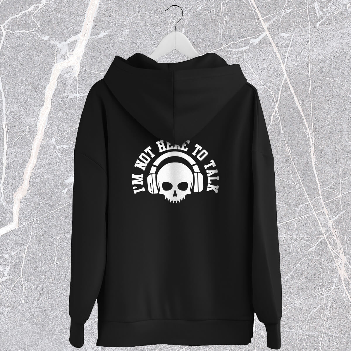 Hooded Full Zip Sweat I’M NOT HERE TO TALK, black