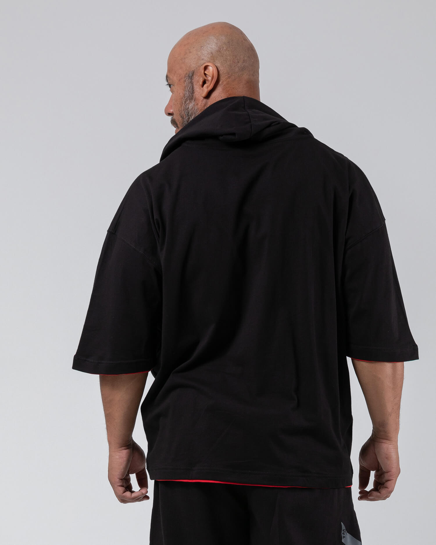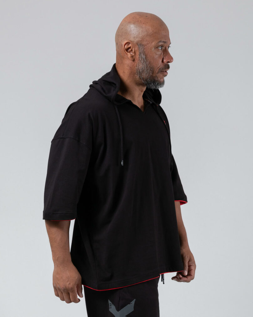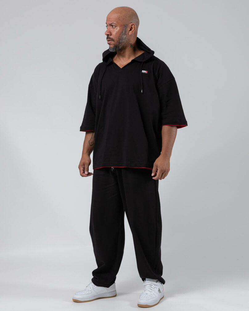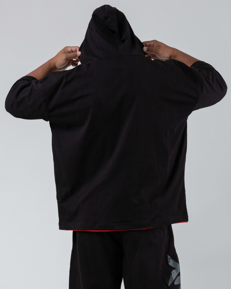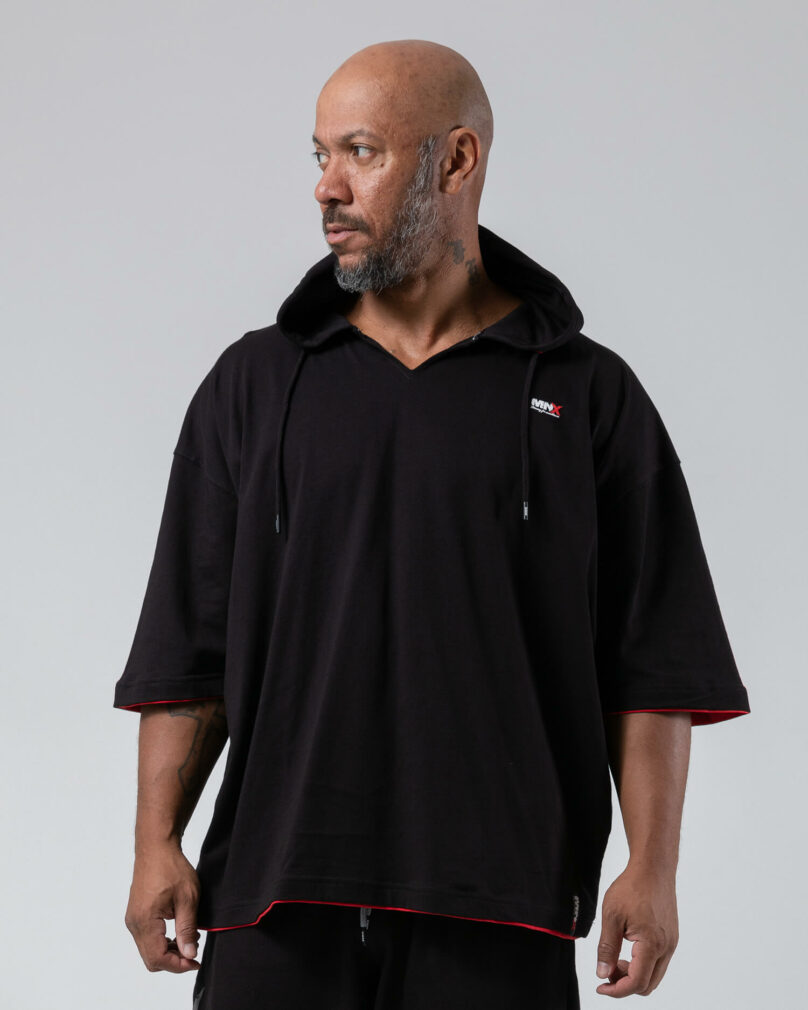 Feel cool and comfortable with this oversized hooded T-shirt. Featuring ripped styling, 2-color cuffs, V-shaped collar with a drawcord and minimalistic MNX branding. Soft fabric, made of 100% cotton is super comfortable. Available in several colors.