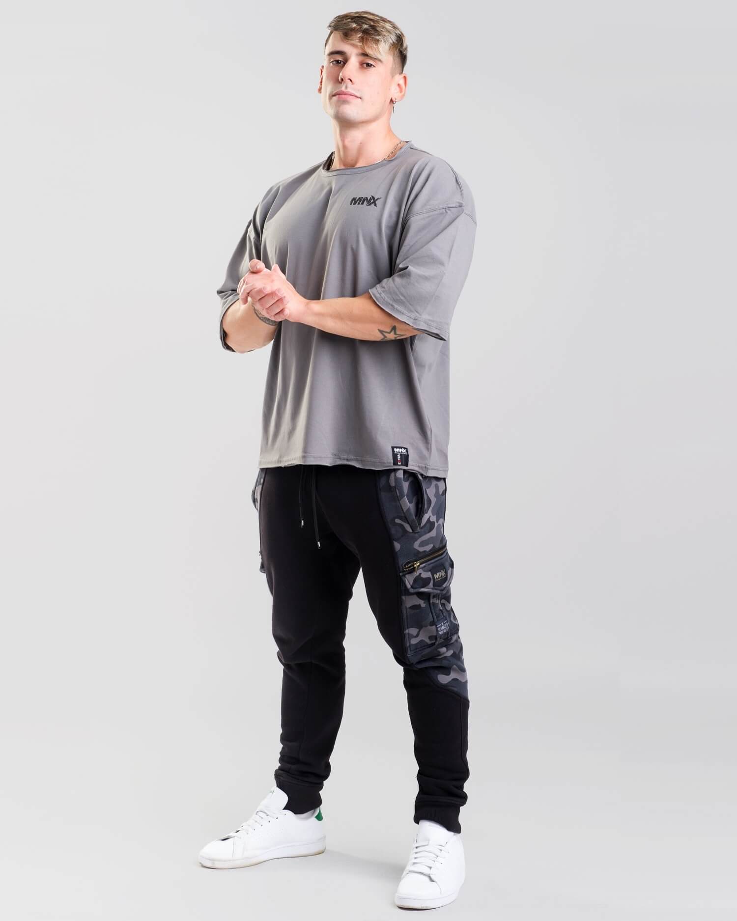 Find your best fitting piece of clothing and lay it down flat on a hard surface. Measure that piece of clothing like you see on the photo above and write your measurements down. Compare your measurements to the ones in the size chart and pick the size that has the most similar values. The measurements are in centimetres.