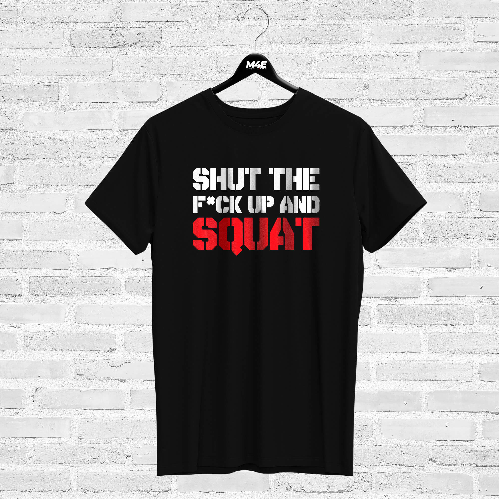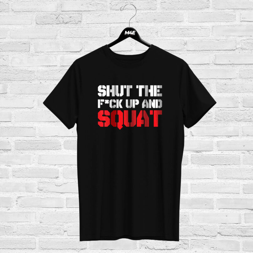 T-shirt SHUT THE F#CK UP AND SQUAT, black