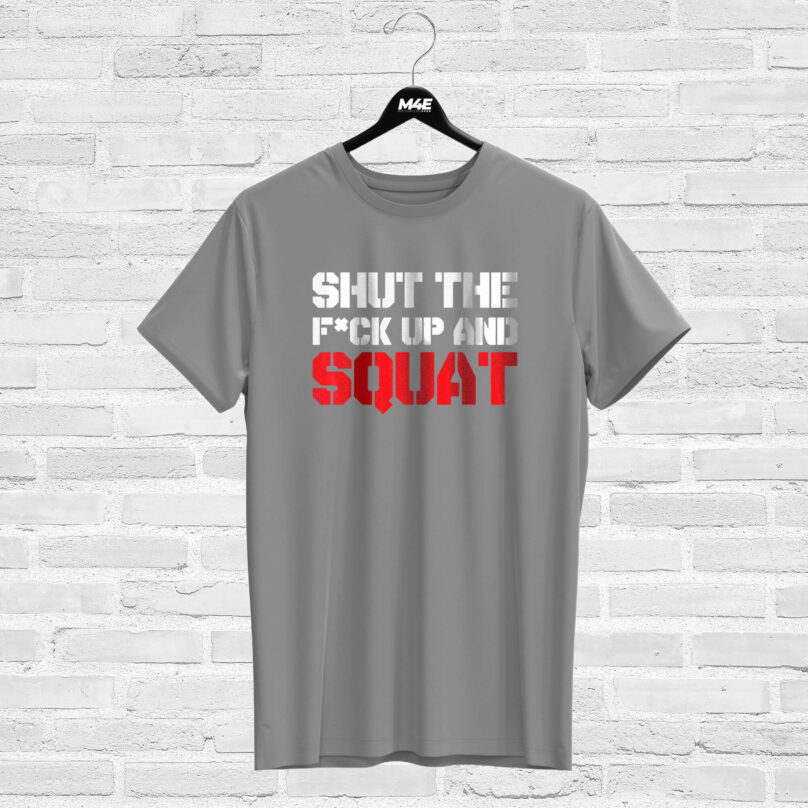 T-shirt SHUT THE F#CK UP AND SQUAT, grey